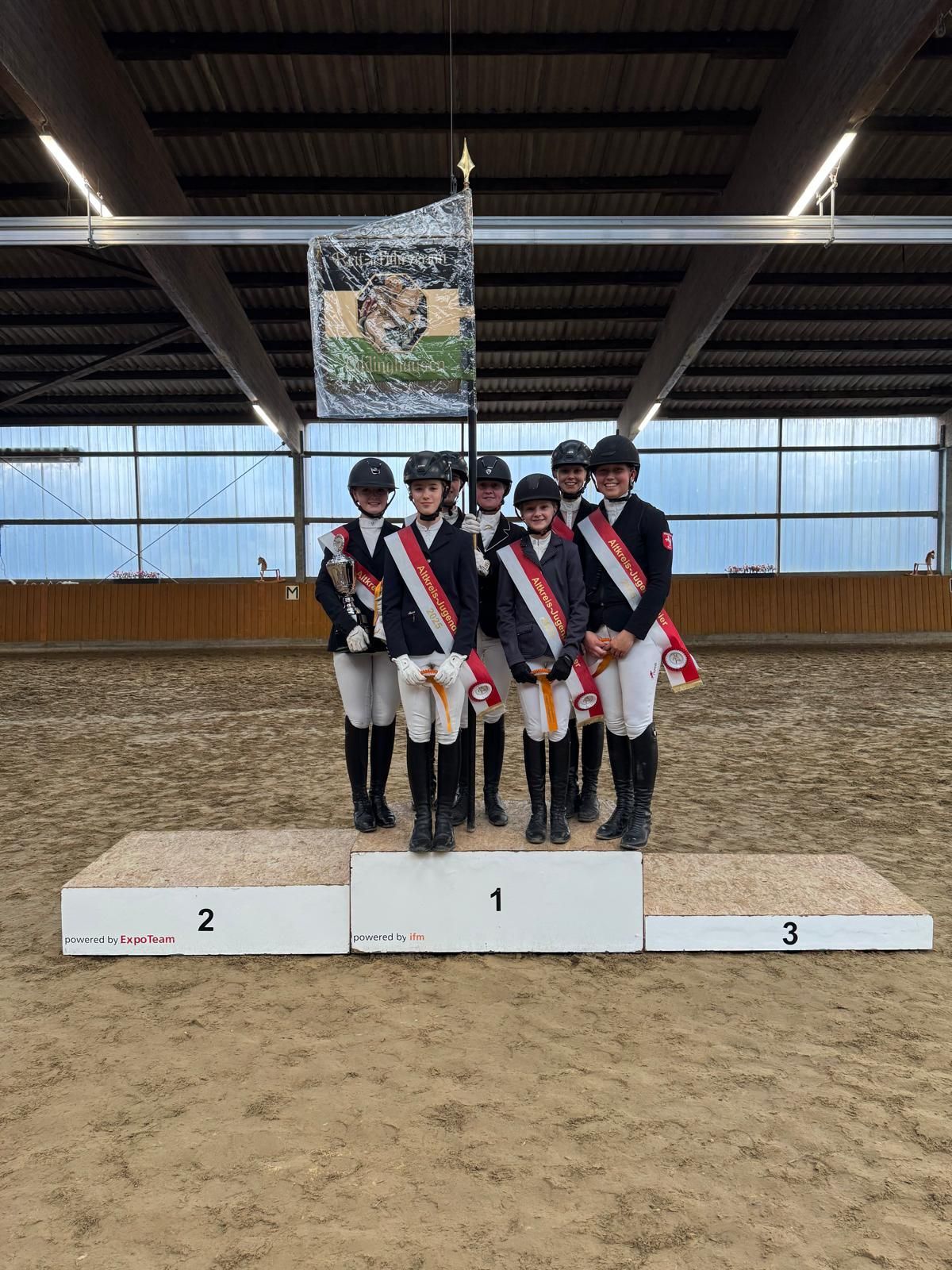 Beim diesjährigen Jugendturnier des Altkreises Lüdinghausen bewies unsere Mannschaft eindrucksvoll ihr Können und sicherte sich den verdienten Titel des Altkreismeisters. Bereits in der Dressurprüfung am Samstagnachmittag legten Franziska Schulte-Strathaus, Marla Moderegger, Clara Schüttert und Theresa Stöcker mit starken Vorstellungen vor. Mit hohen Wertnoten in der Dressuraufgabe, beim Vormustern und im Gesamteindruck schufen sie die perfekte Ausgangsposition für das abschließende Springen. Am Sonntag betrat die Mannschaft als Spitzenreiter den Parcours. Dort bewiesen neben Marla und Clara auch Amelie Tönnissen und Jana Soddemann ihre Nervenstärke. Mit vier makellosen Nullrunden ließen sie der Konkurrenz keine Chance und sicherten dem Reitverein Lüdinghausen den Titel. Die Vorbereitung und Betreuung des Teams lag in den Händen von Katharina Bergmann und Hanna Höcke, die die Reiterinnen optimal auf die Wettkämpfe einstellten. Neben dem Mannschaftserfolg gab es auch herausragende Einzelleistungen zu feiern: In der Springmeisterschaft brillierte Amelie Tönnissen mit ihrer Stute Ma Jolie. Dank eines souveränen Sieges im abschließenden L-Springen mit Stechen durfte sie sich am Ende Vize-Kreismeisterin nennen. Franziska Schulte-Strathaus setzte in der Dressur noch einen drauf: Mit ihrem Pferd Whats App dominierte sie beide Wertungsprüfungen der Dressurmeisterschaft und sicherte sich damit verdient den Titel der Kreismeisterin. Herzlichen Glückwunsch an unser Team für diese grandiose Leistung! Ein großes Dankeschön gilt zudem dem Reiterverein Herbern für die hervorragende Organisation dieses gelungenen Jugendturniers.