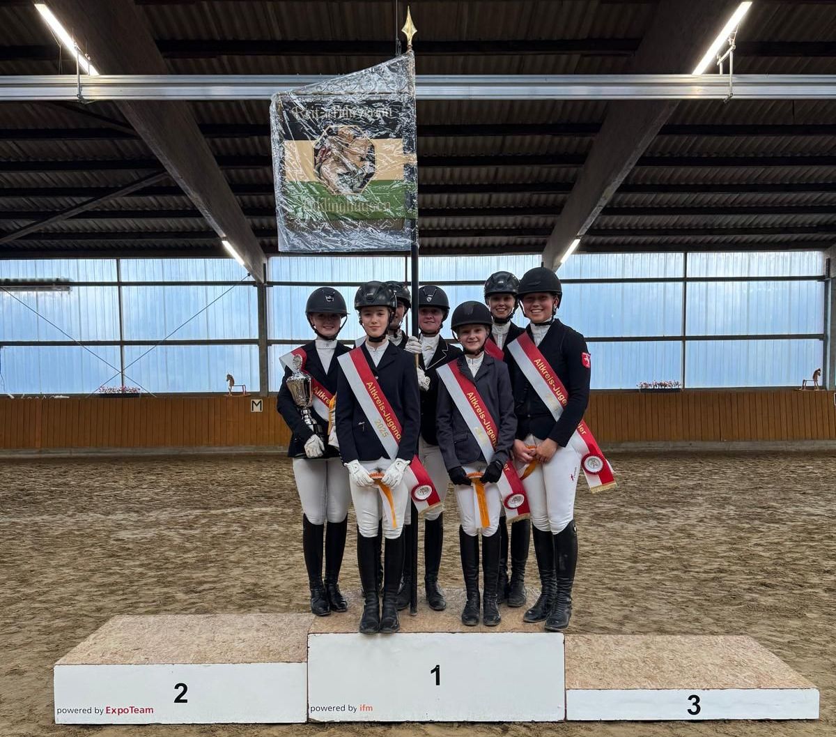 Am Sonntag betrat die Mannschaft als Spitzenreiter den Parcours. Dort bewiesen neben Marla und Clara auch Amelie Tönnissen und Jana Soddemann ihre Nervenstärke. Mit vier makellosen Nullrunden ließen sie der Konkurrenz keine Chance und sicherten dem Reitverein Lüdinghausen den Titel.